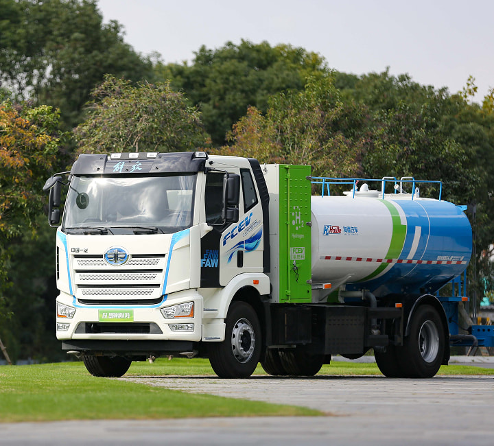 Manufactured by FAW, the 18-tonne hydrogen fuel cell sprinkler truck demonstrates how municipal service vehicles can operate cleanly and quietly without sacrificing performance.